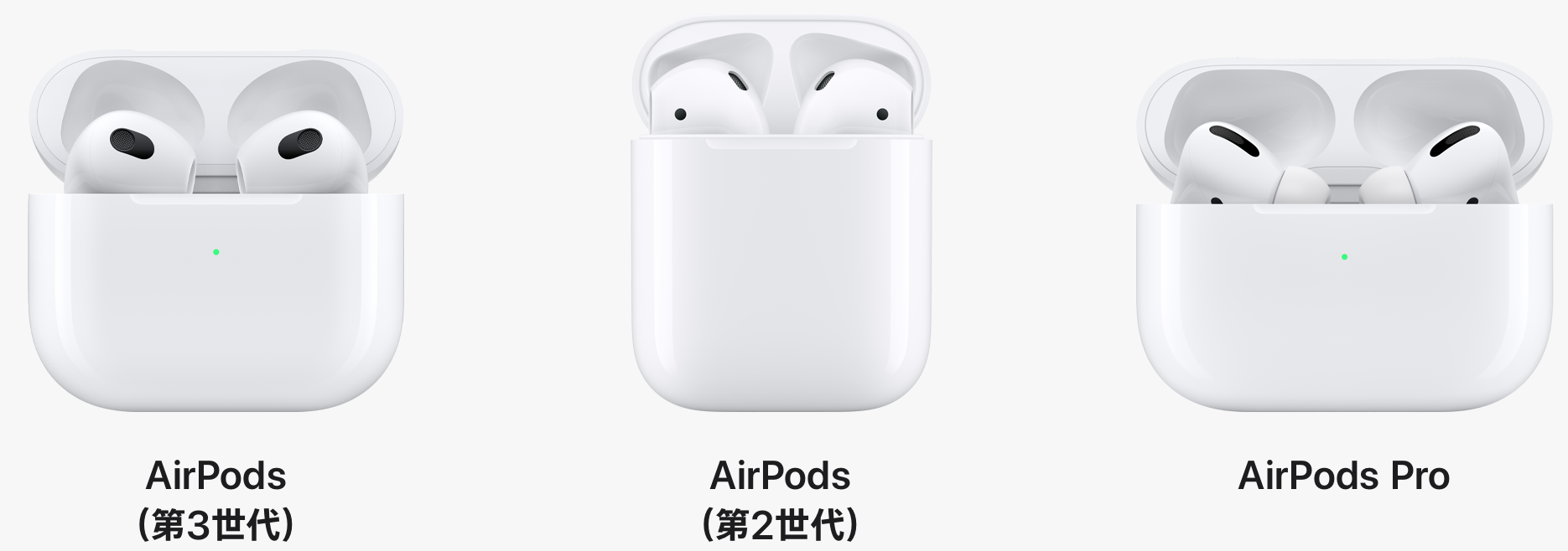 | AirPods (第3世代) | AirPods (第2世代) | AirPods Pro | |
